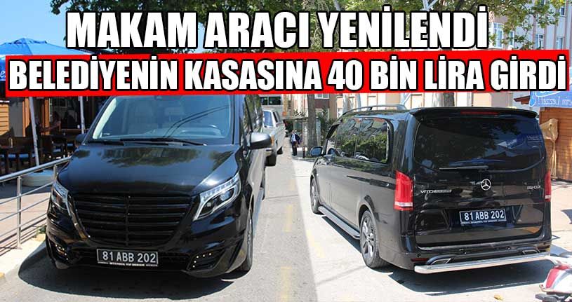 Yapılan satış ve alım neticesinde eski makam aracı ile yeni alınan makam aracı arasında alım ve satış işlemlerinden kaynaklanan 40 bin TL fark Akçakoca Belediyesi’nin kasasına gelir olarak girdi.