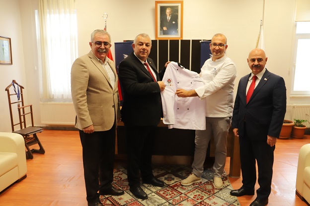 Programın devamında fuarda yer alan Akçakoca Turizm İşletmeciliği ve Otelcilik Yüksekokulu akademisyenleri ve öğrencilerine kendilerine özel olarak hazırlanan şef ceketleri, şef bıçakları ve teşekkür belgeleri verildi.