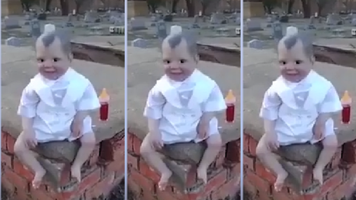 KAN DOLU BİBERONUYLA MEZARLIKTA BULUNAN OYUNCAK BEBEK GÖRENLERE KORKU SAÇTI