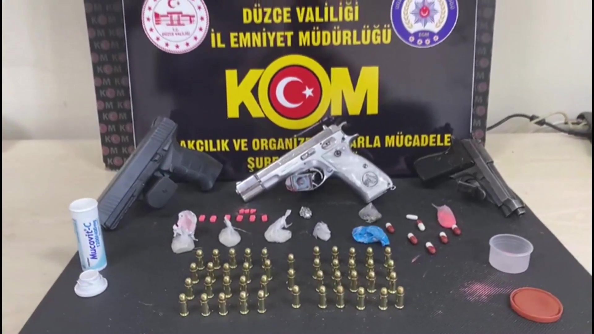 Düzce Cumhuriyet Başsavcılığınca koordine edilen İl Emniyet Müdürlüğü KOM Şube Müdürlüğünce yapılan çalışmalarda liderliğini F.H. isimli şahsın yaptığı organize suç örgütüne yönelik operasyon gerçekleştirildi. Sabah saat 06.00 sıralarında şüpheli şahısları yakalamak ve suç delillerini tespit etmek üzere 5’i Jandarma sorumluluk bölgesi, 2’si polis sorumluluk bölgesi olmak üzere 7 adreste 46 personelin katılımıyla yapılan operasyonda 5 kişi yakalanırken ev ve araçlarında narkotik kepeği ile arama yapıldı. Aramalarda 7 adet sentetik ecza, 4 gram metamfetamin, 1 gram esrar,
