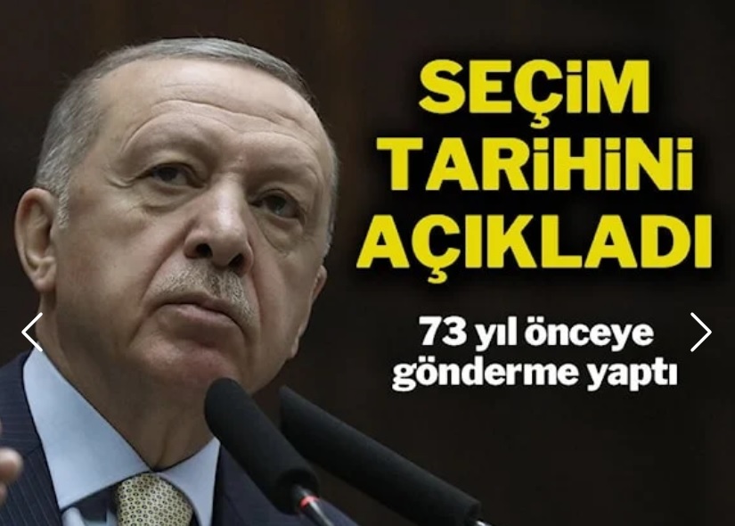 ''Rahmetli Menderes 14 Mayıs 1950'de 'Yeter söz milletin' demiş ve sandıktan büyük bir zaferle çıkmıştı'' diyen Erdoğan, seçim tarihi için 14 Mayıs'ı işaret etti.