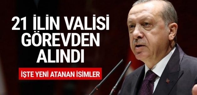 Kararnameyle, Ankara Valisi Ercan Topaca başta olmak üzere 21 ilin valisi görevden alındı. İstanbul Valisi Vasip Şahin Ankara Valiliği'ne, Gaziantep Valisi Ali Yerlikaya İstanbul Valiliği'ne atandı. Görevden alınan valiler arasında, Bursa Valisi İzzettin Küçük, Trabzon Valisi Yücel Yavuz, Hatay Valisi Erdal Ata ve Kilis Valisi Mehmet Tekinarslan'ın isimleri dikkat çekti. Cumhurbaşkanlığı hükümet sistemine geçişin ardından kaldırılan merkez valiliği uygulaması nedeniyle, görevden alınan valiler yeni hükümet sisteminde kaldırılan merkez valiliği yerine mülkiye başmüfettişliği görevlerine getirildi. YER DEĞİŞTİREN VALİLER Aksaray Valisi Aykut Pekmez Adıyaman Valiliğine, Bingöl Valisi Ali Mantı Aksaray Valiliğine, İstanbul Valisi Vasip Şahin Ankara Valiliğine, Konya Valisi Yakup Canbolat Bursa Valiliğine, Gümüşhane Valisi Okay Memiş Erzurum Valiliğine, Sivas Valisi Davut Gül Gaziantep Valiliğine, Kars Valisi Rahmi Doğan Hatay Valiliğine, Gaziantep Valisi Ali Yerlikaya İstanbul Valiliğine, Isparta Valisi Şeyhmus Günaydın Kayseri Valiliğine, Hakkari Valisi Cüneyit Orhan Toprak Konya Valiliğine, Tokat Valisi Ömer Toraman Kütahya Valiliğine, Bolu Valisi Aydın Baruş Malatya Valiliğine, Batman Valisi Ahmet Deniz Manisa Valiliğine, Karabük Valisi Kemal Çeber Rize Valiliğine, Kütahya Valisi Ahmet Hamdi Nayir Sakarya Valiliğine, Muş Valisi Aziz Yıldırım Tekirdağ Valiliğine, Bitlis Valisi İsmail Ustaoğlu Trabzon Valiliğine, Rize Valisi Erdoğan Bektaş Zonguldak Valiliğine getirildi. Merkez Valisi Muammer Erol'un ise Yalova Valiliğine ataması gerçekleştirildi.YENİ ATANAN VALİLER İçişleri Bakanlığı Mülga Dernekler Dairesi Başkanı Yılmaz Doruk Artvin Valiliğine, İçişleri Bakanlığı Nüfus ve Vatandaşlık Genel Müdürü Sinan Güner Bartın Valiliğine, TBMM Başkan Başmüşaviri Mustafa Çiftçi Çorum Valiliğine, İçişleri Bakanlığı Mülga Mahalli İdareler Genel Müdürü Ekrem Canalp Edirne Valiliğine, İçişleri Bakanlığı Personel Genel Müdür Yardımcısı Kamuran Taşbilek Gümüşhane Valiliğine, İçişleri Bakanlığı Mülkiye Teftiş Kurulu Başkanı Ömer Seymenoğlu Isparta Valiliğine, İçişleri Bakanlığı Hukuk Müşaviri Türker Öksüz Kars Valiliğine, İçişleri Bakanlığı Strateji Geliştirme Başkanı Yunus Sezer Kırıkkale Valiliğine, İçişleri Bakanlığı İller İdaresi
