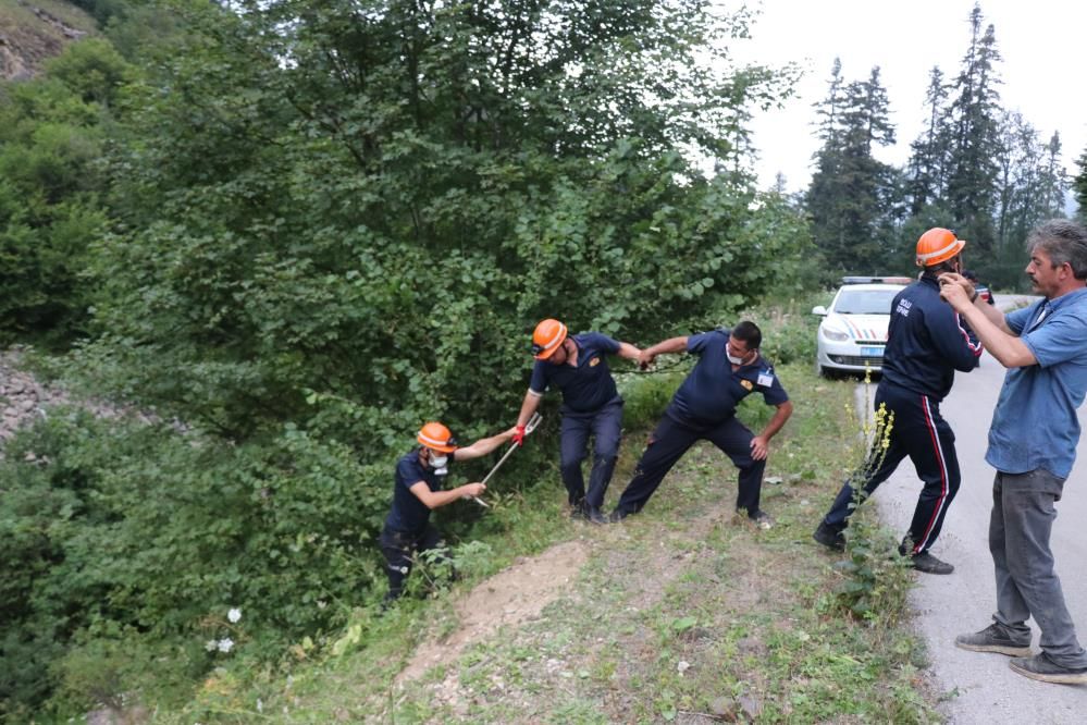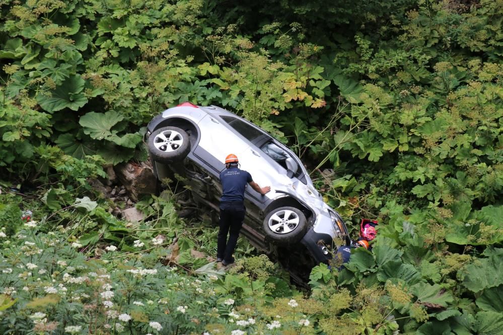 Kazayı gören sürücülerin ihbarı üzerine bölgeye 112 Acil, jandarma ve itfaiye ekibi yönlendirildi. Araçta bulunan sürücü Orhan Uzun ile eşi Emine Uzun, vatandaşların yardımıyla araçtan çıkarılarak uçurumdan yukarı taşındı. Orhan Uzun kazayı yara almadan atlatırken, eşi hafif şekilde yaralandı. Emine Uzun, 112 Acil Servis ekibi tarafından kaldırıldığı hastanede tedavi altına alındı.