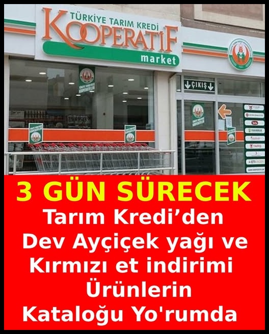 10 Mayıs 2025 Cumartesi 00:083 GÜN SÜRECEK! Tarım Kredi’den dev Ayçiçek yağı ve kırmızı et indirimi Tarım Kredi Market 8-12 Mayıs 2025 indirimli ürünler listesi yayınlandı. Tarım Kredi’de bu hafta yine yok yok. Haberin devamını okumak için Lütfen sonraki sayfaya geçiniz..