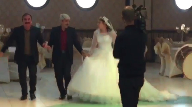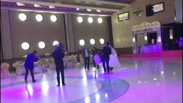 Çocuklarının da gelmediği düğün sadece birkaç kişinin katılımıyla yapıldı. Neredeyse tüm salonun boş olduğu düğünde, halayı da gelin ve damat ile birkaç kişi çekti.