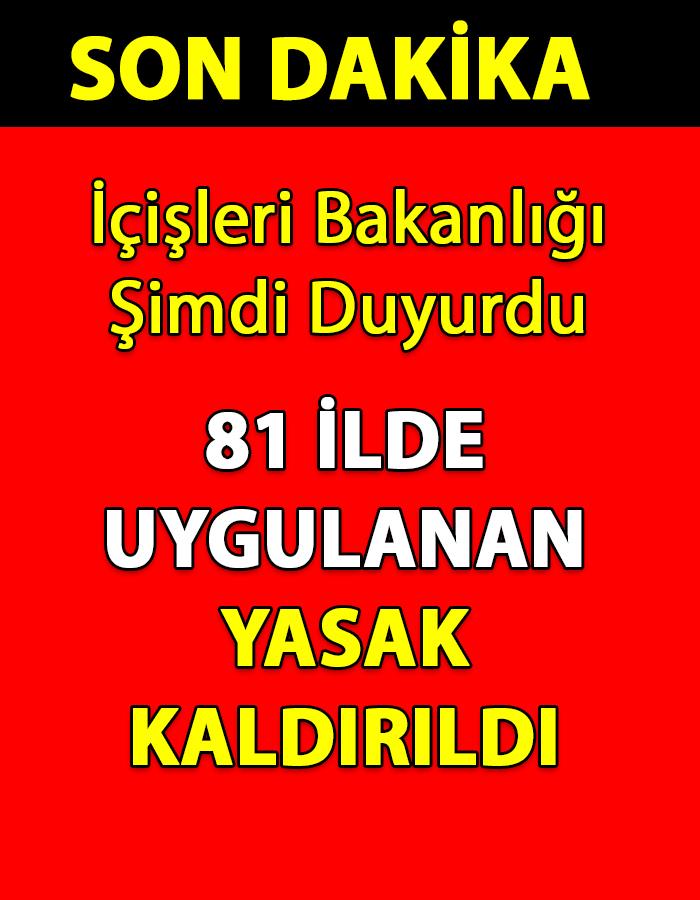 25 Haziran 2020 Perşembe 21:22İçişleri Bakanlığı aylardır devam eden bir yasağı daha kaldırdı.