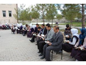 Adıyaman’ın Samsat ilçesinde İmam Hatip Ortaokulu öğrencileri velileri ile birlikte okul bahçesinde kitap okudular.