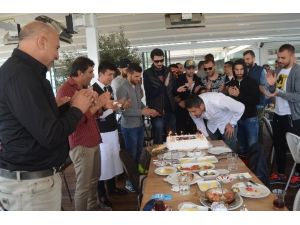 Kahvaltı sonrası sürpriz bir doğum günü kutlaması vardı. Antrenör Ersin Aka, kendisi için hazırlanan ve üzerinde kızıyla çektirdiği fotoğrafının bulunduğu yaş günü pastasını kesti. Teknik direktör Ünal Karaman, Ersin Aka’yı tebrik edip, yaş günü pastasından ikram etti.