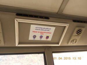 “Ulaşımın kesintisiz, sorunsuz ve güvenli bir şekilde yapılabilmesi, trafik kazalarının ve yolculara karşı hoş olmayan tutum ve davranışların önlenebilmesi başta trafik kuruluşlarımız olmak üzere ilgili kurum ve kuruluşların yapacakları denetimler ile vatandaşlarımız ve sürücülerimizin destek ve yardımlarıyla mümkün olacaktır. Toplu taşıma araçlarını kullanan vatandaşlarımızın huzurlu ve güvenli bir ortamda seyahat edebilmelerini sağlamak, gerekli trafik tedbirlerini almak ve meydana gelmesi muhtemel trafik kazalarını önleyebilmek amacıyla İl genelinde toplu taşıma araçlarını kullanan yolcu ve vatandaşlarımızdan gelen dilek, öneri ve şikayetlerin çalışmalarımıza yön vereceği düşüncesiyle ücretsiz aranabilecek numaralar toplu taşıma araçlarına asılmış; Müdürlüğümüz Trafik Denetleme Şube Müdürlüğü ve Bölge Trafik Denetleme Şube Müdürlüğü ekiplerinin günlük yapmış oldukları çalışmalarına ek olarak sivil kıyafetli trafik personeli toplu taşıma araçlarına yolcu gibi binerek sürücülerin kural ihlalleri ile tutum ve davranışlarını denetlemeye başlamışlardır.”