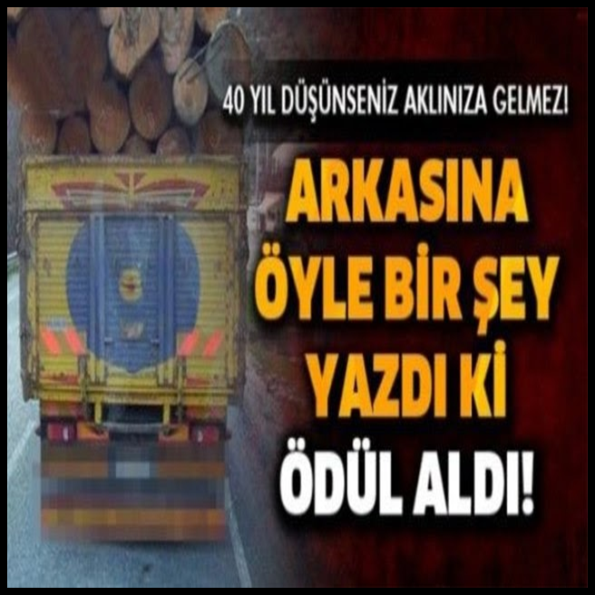13 Eylül 2021 Pazartesi 21:12Kamyonun arkasına yazdıkları yazıyla ödül aldılar! "O kilometre kamyon arkası yazıları" yarışması sonuçlandı. Jüri başkanlığını Metin Üstündağ'ın yaptığı yarışmanın sonunda yeni kamyon arkası yazıları bir kitapta toplandı. İşte O Birbirinden İlginç Yazılar... Kamyonun arkasına yazdıkları yazıyla ödül aldılar! Kamyonun arkasına yazdıkları yazıyla ödül aldılar! "O kilometre kamyon arkası yazıları" yarışması sonuçlandı. Jüri başkanlığını Metin Üstündağ'ın yaptığı yarışmanın sonunda yeni kamyon arkası yazıları bir kitapta toplandı. İşte O Birbirinden İlginç Yazılar... HABERİN DETAYI İ,ÇİN ReSİMLERE TIKLAYINIZ