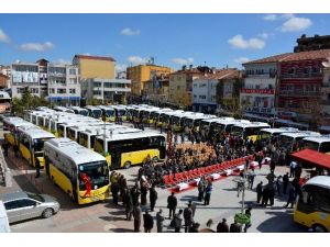 Aksaray Belediye Başkanı Haluk Şahin Yazgı, toplu ulaşımda 147 adet aracı birden hizmete sundu.