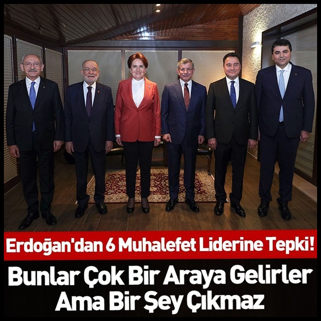 Cumhurbaşkanı Erdoğan, CHP lideri Kemal Kılıçdaroğlu’nun liderliğinde muhalefet partilerinin genel başkanlarının katıldığı çalışma yemeği hakkında şunları kaydetti; ‘Bir defa Cumhurbaşkanlığı Hükümet Sistemini bu milletin kendisi getirmiştir. Bunu kabul etmeyenler en başta millet iradesine saygısızlık yapıyor demektir. Tabii bunların bir araya gelmeleri manidar. Niye 28 Şubat? Bu da garip. Öbür taraftan HDP'yi çıldırtıyorlar. Oldu olacak onu da alın yanınıza. Bunlar daha çok bir araya gelirler ama bunlardan bir şey çıkmaz. Biz ise Cumhur İttifakı olarak; AK Parti, Milliyetçi Hareket Partisi, Büyük Birlik Partisi olarak emin adımlarla kararlı bir şekilde yolumuza devam ediyoruz, devam edeceğiz. Hazırlıklarımızı buna göre yapıyoruz. Vatandaşlarımızın herhangi bir sıkıntı çekmesine sebebiyet verecek adımlara fırsat vermeyiz. Zaman zaman ekonomi ile alakalı konularda yalan yanlış konuşuyorlar. Ama gerek elektrik konusunda gerek diğer konularda, bunların hiçbirine biz vatandaşımızı ezdirmeyeceğiz ve vatandaşlarımızla geleceğe yönelik adımlarımızı kararlı bir şekilde atmaya devam edeceğiz.’