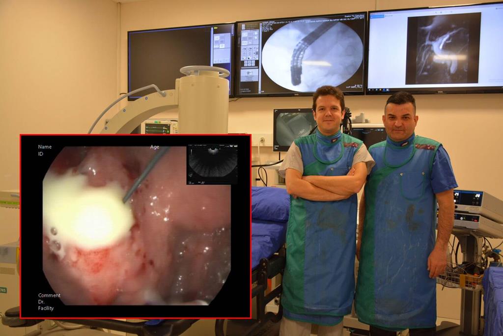 Yapılan tetkiklerinde hastanın pankreas bezinde yaklaşık 10 cm büyüklüğünde bir abse tespit edildi. Pankreas iltihabı sonrası gelişen abselerin ameliyat edilmesinin oldukça riskli olması nedeniyle Düzce Üniversitesi Tıp Fakültesi İç Hastalıkları Anabilim Dalı ve Gastroenteroloji Bilim Dalı Öğretim Üyesi Doç. Dr. Serkan Torun ve Genel Cerrahi Anabilim Dalı Dr. Öğr. Üyesi Mehmet Fuat Çetin, hastanın mide içerisinden özel bir ultrasonografi yöntemi ile (Endoskopik Ultrasonografi) absenin mideye ağızlaştırılarak tedavi edilmesinin mümkün olduğunu düşündüler. Hasta ve hasta yakınları ile yapılan görüşme sonrası bu tedavi seçeneği üzerinde karar kılan doktorlar, Endoskopik Ultrasonografi eşliğinde bir stent vasıtasıyla abseyi mide içerisine boşalttı.