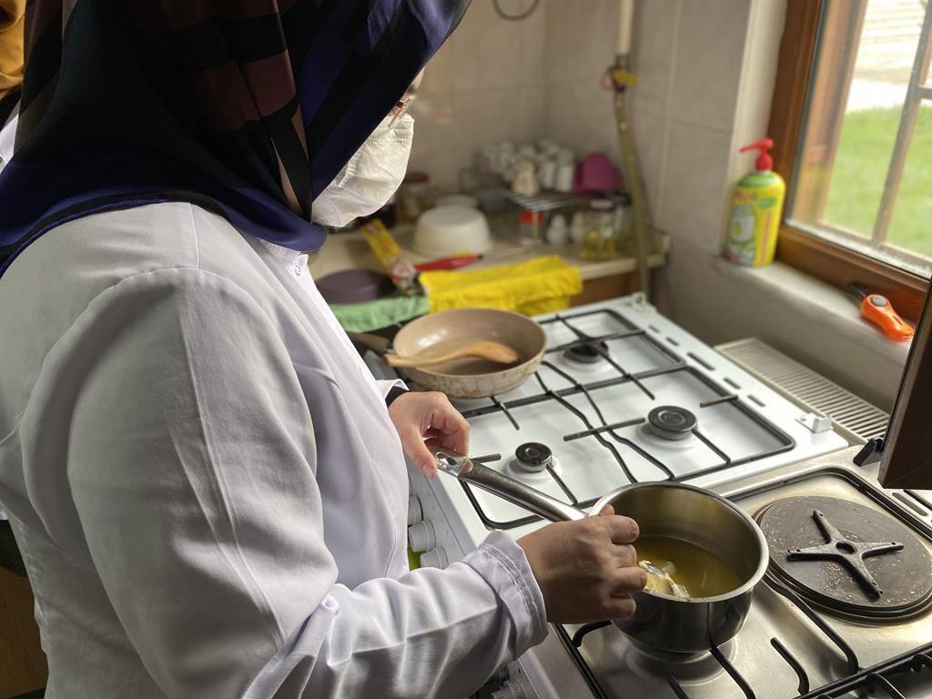 Düzce'de Halk Eğitim Merkezi'nde düzenlenen 'Aşçılık Kursu' vatandaşların ilgisini çekiyor. Korona virüs tedbirleri kapsamında sosyal mesafe, maske ve hijyen kurallarına uyularak açılan aşçılık kursuna kadınlar ilgi gösterirken, erkeklerde ilgi göstermeye başladı. Evde annesinin yaptığı yemeklerin kendisinde merak uyandırdığını belirten erkek kursiyer de eğitim görüyor.