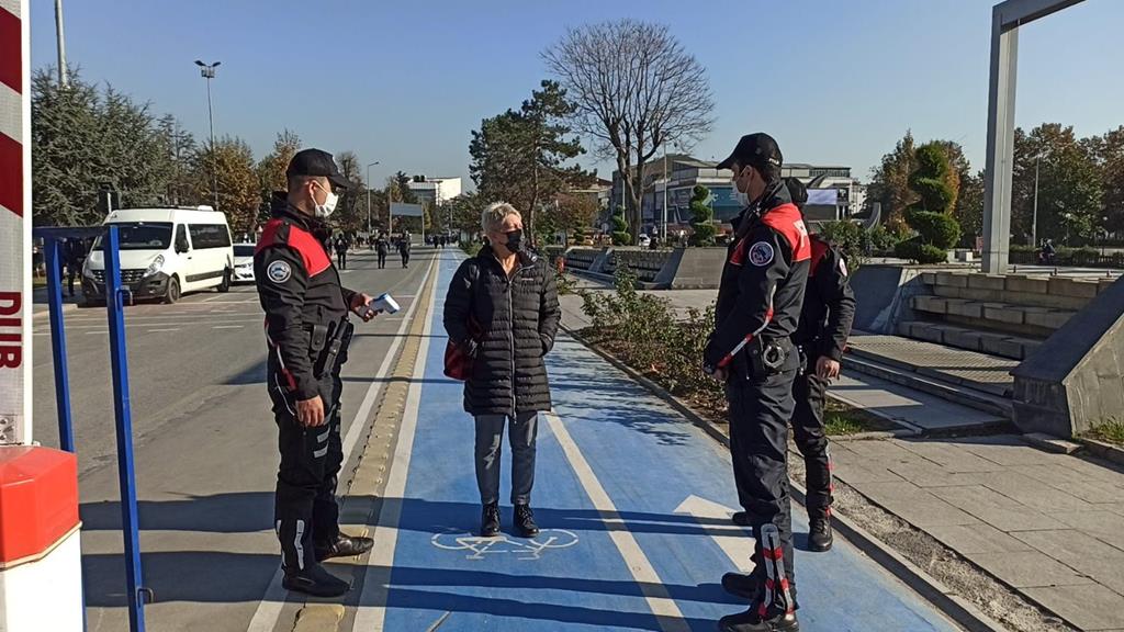 Drone destekli yapılan uygulamada maske takmayan ve sigara içme yasağına uymayan vatandaşlar da kontrol ediliyor. Ayrıca caddeye giriş çıkışlarda vatandaşların ateş ölçümleri de yapılarak, riskli görülen vatandaşlar sağlık kuruluşlarına yönlendirilecek.