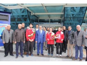 MİLLİ SPORCUYA COŞKULU KARŞILAMA