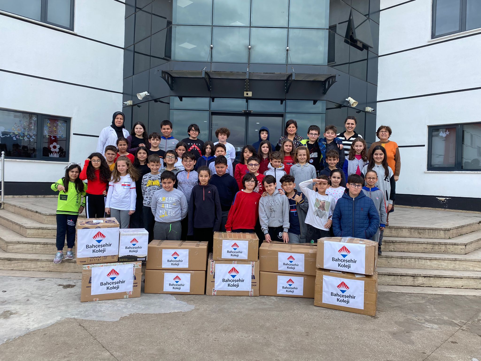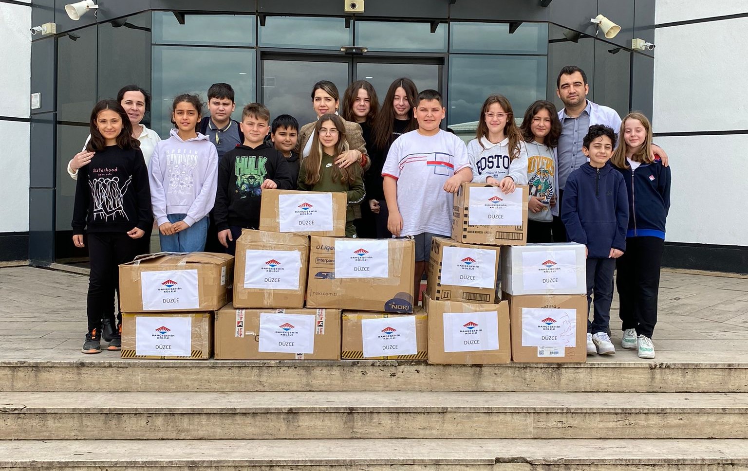 Düzce Bahçeşehir Koleji ilk, orta ve lise öğrencileri başlattıkları "1 Oyuncak 1 Kitap Yüzlerde Mutluluk” projesiyle topladıkları oyuncak ve kitapları deprem bölgesindeki kardeşlerine gönderdiler.