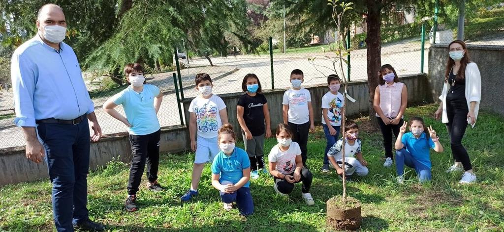 Düzce 23 Nisan İlkokulu öğrencileri Milli Eğitim Bakanı Ziya Selçuk’un çağrısına kulak vererek okul bahçesine minik elleri ve öğretmenlerinin yardımı ile fidanları toprakla buluşturdular.