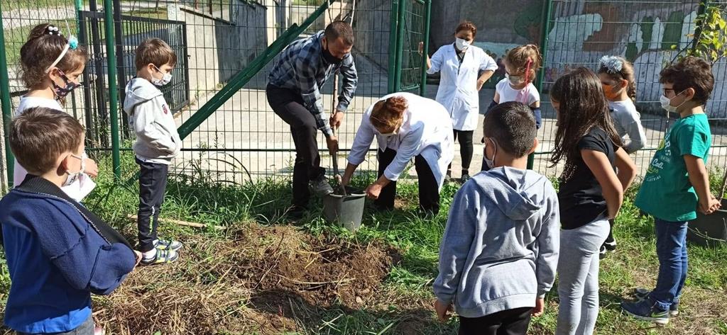 Ülkemizde, yanan ormanların hüznünü yaşayan 23 Nisan İlkokulu öğrencileri Milli Eğitim Bakanı Ziya Selçuk’un çağrısına kulak vererek okul bahçesine meyve fidanları diktiler.