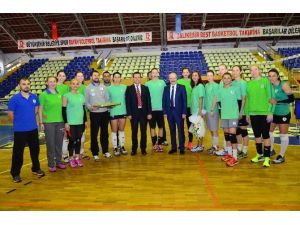 Balıkesir Büyükşehir Belediyespor Bayan Voleybol Takımı 9-10-11 Nisan günü Bursa’da Play-Off maçlarına katılacak. Altıeylül Belediye Başkanı Zekai Kafaoğlu beraberinde Belediye Başkan Yardımcısı Mesut Eray ile birlikte Kurtdereli Spor Salonu’na giderek, bayan voleybolcuları antrenmanda ziyaret etti. Takım kaptanına çiçek takdim eden ve takıma baklava ikram eden Kafaoğlu tüm sporcuları kutladı.