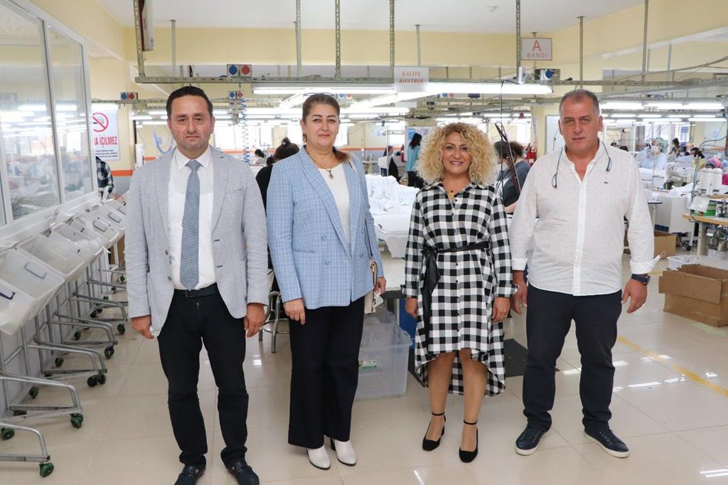 Akçakoca Belediye Başkanı Okan Yanmaz ve Umut Işığı Yardımlaşma ve Dayanışma Birimi Gönüllü Koordinatörü Nursen Yanmaz ile birlikçe Akçakoca ilçesinde bulunan tekstil atölyelerini ziyaret etti.