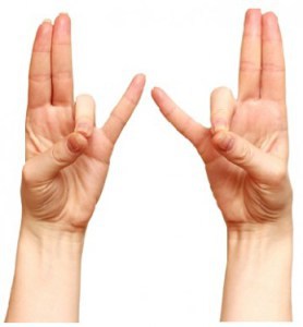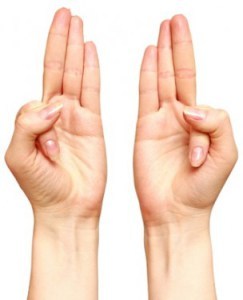 Yüzük parmağını avuca doğru kapatın ve baş parmağınızla bu parmağın ikinci boğumuna bastırın. Diğer parmaklarınızı ise dik uzatın.
