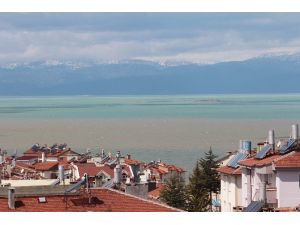 Son yağışlarla birlikte su seviyesi yükselmeye başlayan Beyşehir Gölü’nün su yüzeyi şiddetli lodos nedeniyle değişerek çamur rengine dönüştü.