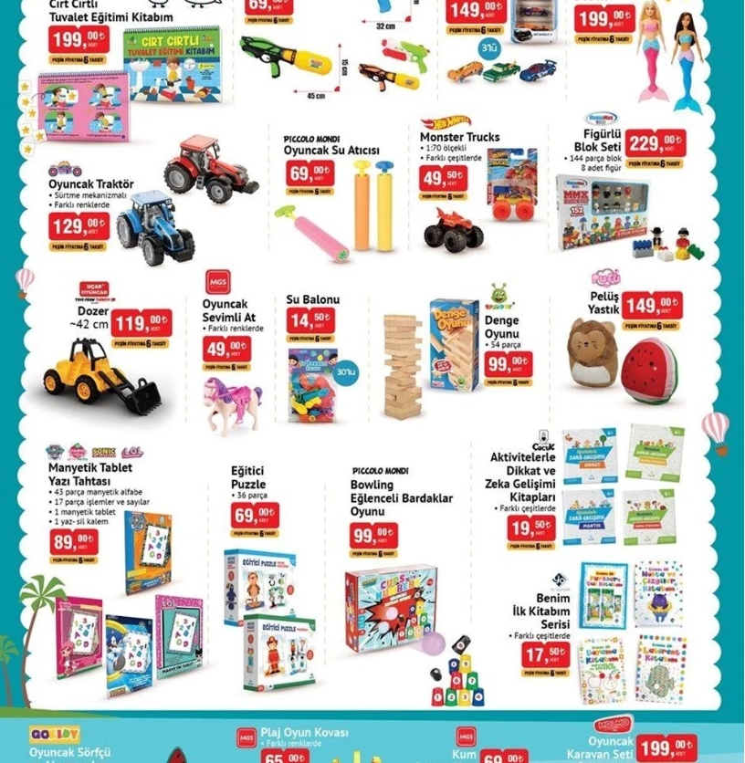 23 Mayıs 2024 Perşembe 21:06Yükselen Zeka Cırt Cırtlı Tuvalet Eğitimi Kitabım - 199 TL Oyuncak Su Atıcısı - 69 TL Arabalar - 149 TL Hot Wheels Monster Trucks - 49,50 TL Uçar Oyuncak Dozer - 119 TL Su Balonu - 49 TL Eğitici Puzzle - 69 TL MGS Kum Oyuncakları - 69 TL MGS Oyuncak Karavan Seti - 199 TL İşte ayrıntılı liste...Devam etmek için resme dokunarak lütfen diğer sayfaya geçiniz.