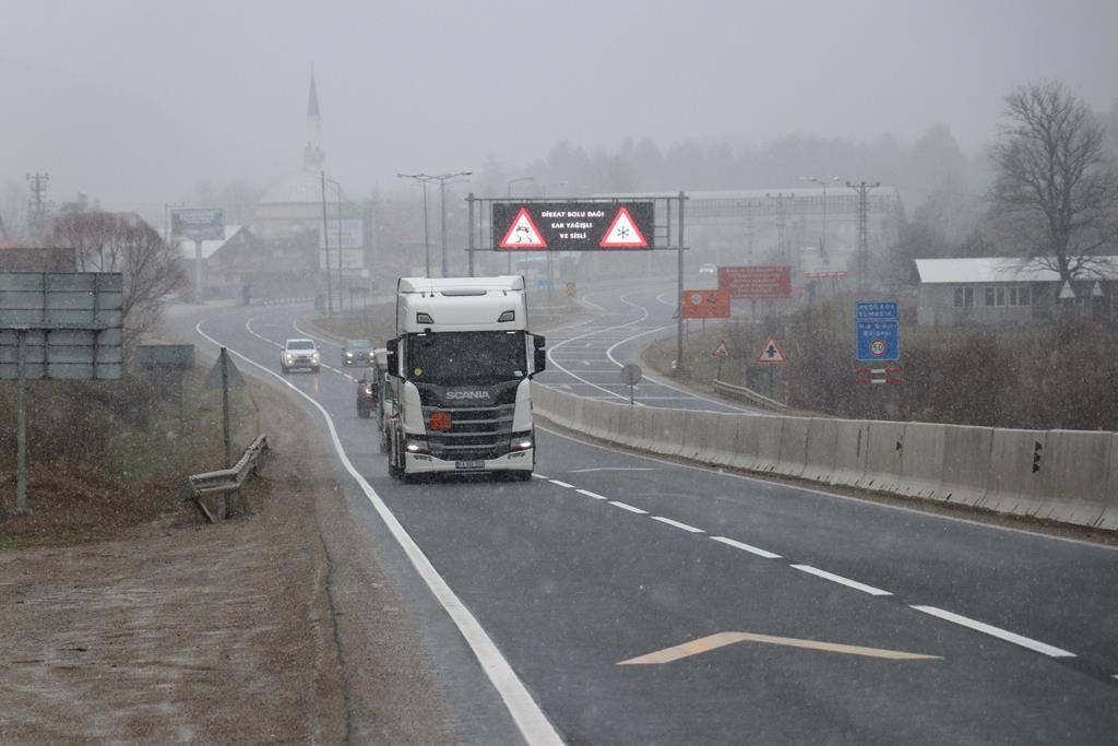 Bolu’da, D-100 Karayolu ve TEM Otoyolu Bolu Dağı kesiminde öğle saatlerinde başlayan kar yağışı hafif şekilde devam ediyor. Yoğun sisin de etkili olduğu Bolu Dağı’nda görüş mesafesi yer yer 10 metreye kadar düştü.