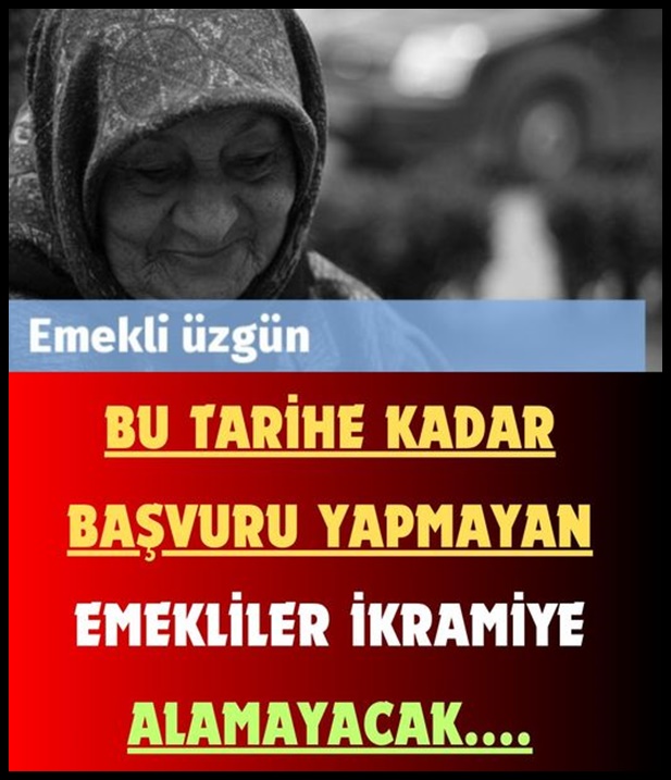 18 Şubat 2024 Pazar 20:28Dikkat! Bu tarihe kadar başvuru yapmayan ikramiye alamayacak Milyonlarca emekli vatandaşın gözü verilecek bayram ikramiyesine çevrildi. Belirlenen tarihe kadar başvuru yapmayan emekliler ise ikramiye alamayacak. Haberimizin devamını okumak için Lütfen sonraki sayafaya geçiniz..