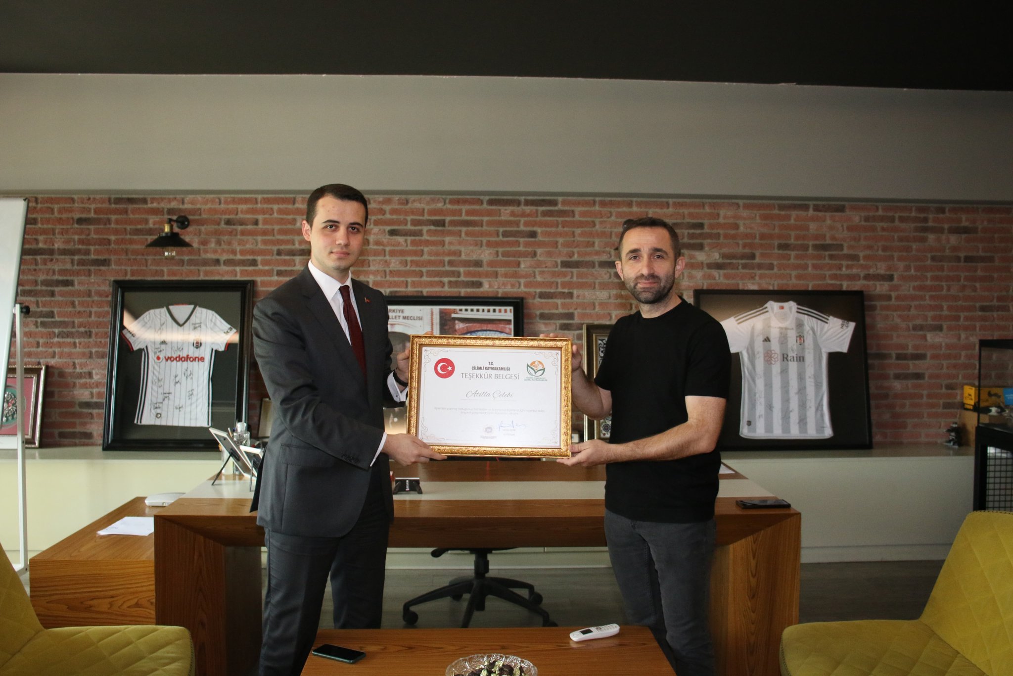 Çilimli Kaymakamı Furkan Albay Çelebi Kalıp Fabrikasını ziyaret etti. Furkan Alpay, ilçemizde faaliyet yürüten Çelebi Kalıp Fabrikasının sahibi Atilla Çelebi'ye ilçeye yapmış olduğu katkılardan dolayı teşekkür belgesi takdim etti.