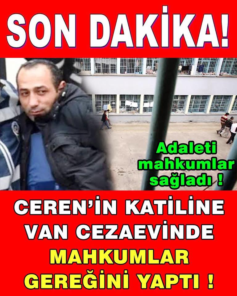 12 Aralık 2019 Perşembe 19:41Ceren Özdemir(20)'in ka-til zanlısı Özgür Arduç'un güvenlik gerekçesiyle gönderildiği Van Cezaevi'nde uğradığı saldırı sonucu yedi kaburgası kırıldı. Ordu'nun Altınordu ilçesi Zaferi Milli Mahallesi'nde 20 yaşındaki Ordu Üniversitesi Müzik ve Sahne Sanatları 3. Sınıf Öğrencisi Ceren Özdemir, Özgür Arduç tarafından bı-çaklanarak öl-dürül-müştü.Türkiye'yi yasa boğan ve Ceren'i hayattan koparan Özgür Arduç, kendisini yakalayan polislere de mukavemet etmiş ve 2 polisi yaralamıştı. Olayın ardından verdiği ifadede ka-n donduran ifadeleri ortaya çıkan Arduç, çıkarıldığı mahkemece tutuklanıp Ordu Perşembe Efirli Cezaevi'ne yollandı.