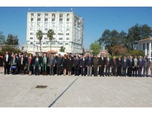 Cumhuriyet Meydanı’nda düzenlenen tören Adana Baro Başkanı Mengücek Gazi Çıtırık ve Ceyhan Baro Temsilcisi Öznur Özbek’in Atatürk Anıtına çelenk sunumu ile başladı.