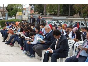 Kitap okuma etkinliğine Belediye Başkanı Alemdar Öztürk, İlçe Milli Eğitim Müdürü Memduh Topuz, kamu personelleri ve vatandaşlar da öğrencilerle kitap okuyarak destek verdi.