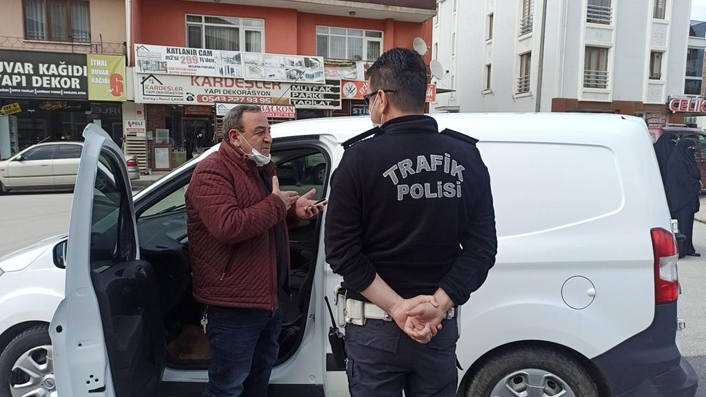 Bu kapsamda Bolu Caddesi üzerinde denetim yapan trafik ekibi, şehir merkezine doğru seyir halindeki hafif ticari araç kullanan sürücüsünün direksiyon başında cep telefonu ile konuştuğunu fark ederek durdurdu. Ancak sürücü, yaptığı kural ihlalini unutarak durmasına rağmen cep telefonu ile konuşmasına devam etti. Trafik Şube Müdürlüğü komiseri ise bir süre sürücünün cep telefonu ile konuşmasının bitmesini bekledi. Ancak sürücü konuşmaya devam edince aracın kapısını açtı ve “Beyefendi telefonu ne zaman kapatmayı düşünüyorsunuz” diyerek sürücüyü uyardı. Ardından ehliyetini veren sürücü ceza yazılmaması içinde uzun süre dil döktü. Trafik ekibi sürücüye uyarıda bulunarak sürücüyü denetim noktasından gönderdi.