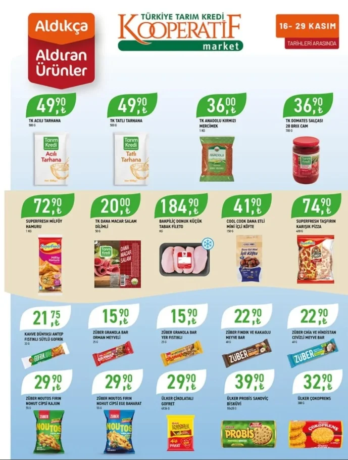 Tarım Kredi’nin aktüel ürünler kataloğunda kahvaltı sofralarının vazgeçilmezleri uygun fiyatlarla sunuluyor. Süt, peynir ve tereyağı gibi kahvaltı ürünlerinde yapılan indirimler, kaliteli ve uygun fiyatlı gıda arayan tüketiciler için cazip hale geliyor.