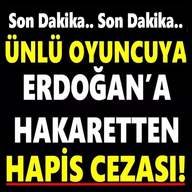 30 Ocak 2021 Cumartesi 15:28Ünlü oyuncuya ‘Erdoğan’a hakaret’ten hapis cezası istendi Sosyal medya hesabından Cumhurbaşkanı Recep Tayyip Erdoğan’a hakaret ettiği iddiasıyla yargılanan Yeşilçam oyuncusu Nilüfer Aydan’ın (Aydan Canbula), “Cumhurbaşkanı’na alenen hakaret” suçundan 4 yıl 8 ay hapsi istendi.
