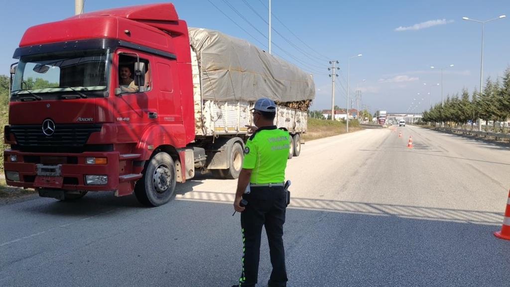 D-100 Karayolu Gölyaka sapağında gerçekleştirilen denetimlerde binek, ticari, kamyonet, kamyon ve tır sürücülerine yönelik denetim yapıldı.
