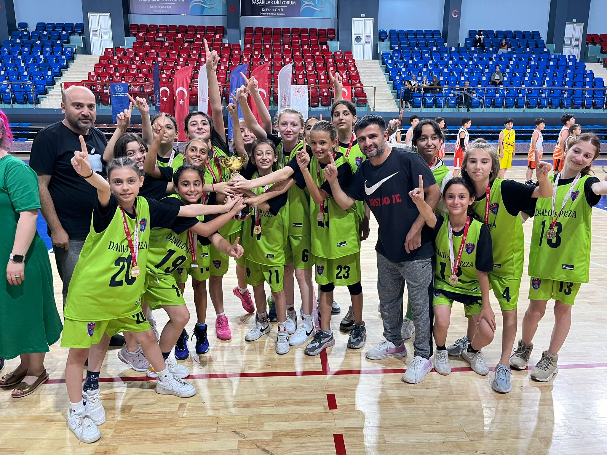 Yaklaşık 5 ay önce Düzce’de altyapı faaliyetlerini başlatan Danilo’s Pizza, Düzce Basket ile yapmış olduğu anlaşma sonucu Düzcemizin kız çocuklarının eğitimine katkı sağlamaya başladı. Bu sene ilk defa katıldıkları Düzce müsabakalarında şampiyon olarak altyapıda ne kadar iddialı olduklarını kanıtladılar.