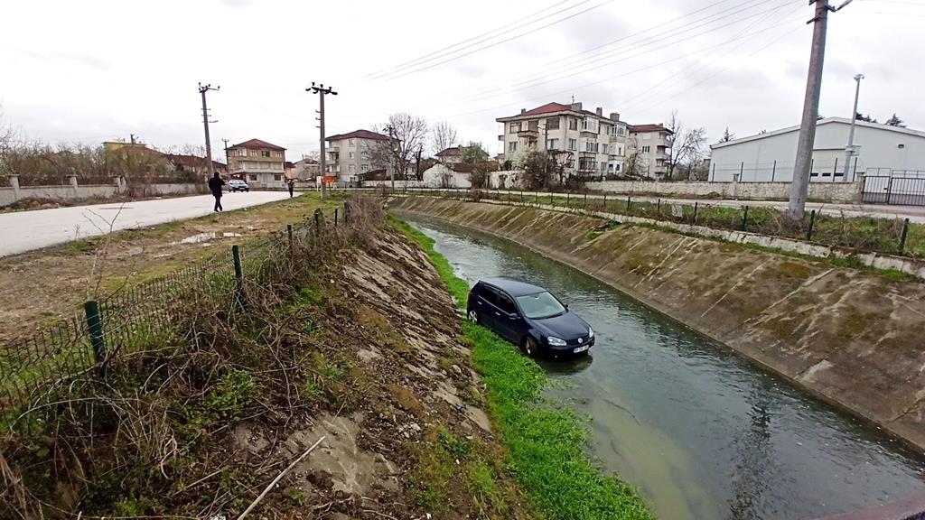 Düzce’de öğlen saatlerinde meydana gelen kazada A.K.’nin kullandığı 81 DG 200 plakalı Volkswagen marka otomobil Beyciler Mahallesi 1561 sokakta D-655 Karayolu istikametine ilerlerken sürücüsünün direksiyon hakimiyetini kaybetmesi sonucu yol kenarında bulunan DSİ’ye ait dereye uçtu.