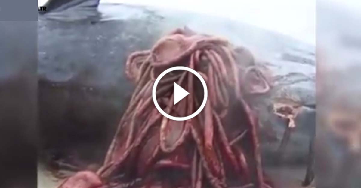 Dev balina saniyeler içinde patladı! Kıyıya vuran balinanın içinden çıkanlar görenleri şoke etti..