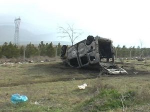 Kaza sabah saatlerinde Ereğli - Karapınar yolu Acıgöl mevkisinde meydana geldi. Edinilen bilgiye göre Özkan K’nin kullandığı 06 FG 7300 plakalı hafif ticari araç, bir otomobile çarparak şarampole devrildi. Kazanın ardından araç yanmaya başladı. Biranda büyüyen yangın aracı tamamen kapladı. Karapınar ve Ereğli Belediyesi İtfaiye ekiplerinin müdahalesine rağmen araç kullanılamaz hale geldi. Sürücü Özkan K. ile araçta bulunan Hakan Y. ve Cüneyt Ö. yaralandı. Yaralılar ambulanslarla hastaneye kaldırıldı.