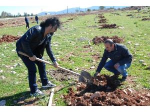 Sağlık ve Sosyal Hizmet Emekçileri Sendikası Didim Temsilciliği üyeleri, Akbük yolu üzerinde 200 çam fidanını toprakla buluşturdu.
