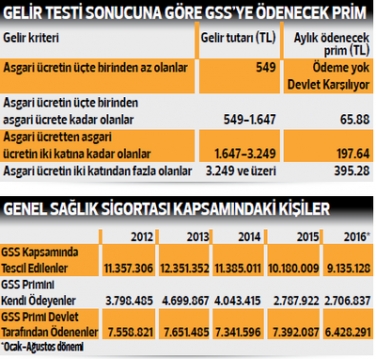 14 Aralık 2016 Çarşamba 19:33Ancak çalışmayanlar için durum biraz farklı. Bu kişiler de GSS kapsamında ve devletin sunduğu sağlık hizmetinden yararlanmaları için prim ödemeleri gerekiyor. Tabi bu, herkes için geçerli değil; geliri olmayan ya da belli bir miktarın altında olan –ki, bu yıl için bu rakam 549 lira- kişilerin primlerini devlet karşılıyor. İşte kim, ne kadar prim ödeyecek, kimlerinkini devlet karşılayacak; tüm bunların tespiti için gelir testi yapılıyor. Hemen belirteyim, gelir testini yaptırmak zorunlu, yaptırmayanlar devletin sunduğu hiçbir sağlık hizmetinden yararlanamıyor. Gelelim, asıl soruna. GSS’nin başladığı 2012 yılında, 12.5 milyona yakın kişi, yani çalışmayanlar, gelir testi yaptırarak, sağlık hizmeti almaya başladı. Ancak her geçen yıl bu testi yaptıranların sayısı azaldı ve en son 9.1 milyon kişi GSS kapsamında tescil edildi; bunun 6.4 milyonunun geliri düşük olduğundan primlerini devlet karşıladı, 2.7 milyonu ise primini kendi ödedi. Hem sağlık hizmeti alamayanların hem de SGK’ya borcu olanların sayısı artınca önce 2015 yılında bu kişiler için yeniden yapılandırmaya gidildi, hatta iki kere tarih ertelendi ama yine de beklenen başvuru olmadı. Ardından bu senenin ortalarında, 25 yaşına kadar olan ve GSS prim borcu bulunan 3.5 milyon gencin, 26 Nisan’dan önceki borçlarına af getirildi ancak bu tarihten sonra gelir testi yaptırmayanlar yine borçlu oldu.