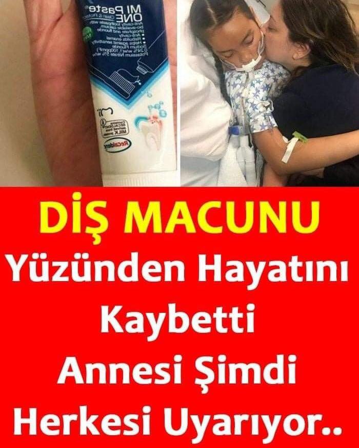 03 Mart 2021 Çarşamba 19:3711 yaşındaki bir kız çocuğu diş macunu içerisindeki bir maddeden dolayı alerjik reaksiyon kaynaklı olarak hayatını kaybetti. Annesi şuan yasını tutuyor. Monique Altamirano kızını diş macunundan dolayı kaybettikten sonra diğer ebeveynleri uyardı.