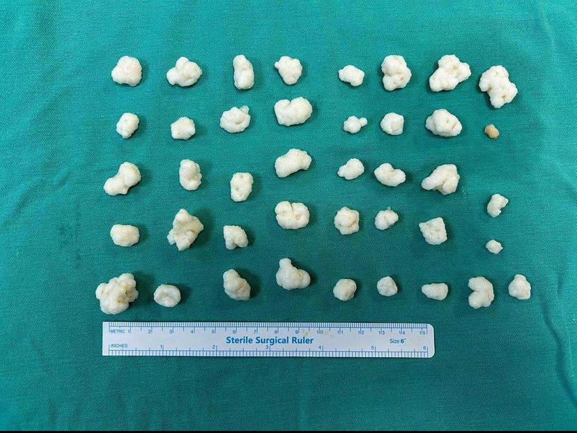 Diz ağrısı şikayeti ile geldiği Düzce Üniversitesi Tıp Fakültesi Hastanesi’nde ameliyata alınan hastanın dizlerinden toplam 41 adet multipl sinovial kondromatozisi çıkartıldı. Özellikle diz eklemi çevresinde görülmekle birlikte kalça, dirsek ve diğer eklemlerde de görülen, ufak parçalardan oluşan cisimler olarak tanımlanan eklem faresi, eklem çevresinde eklem sıvısı ya da sinoviyumda görülen kıkırdak ya da kemik parçalarıdır. Eklem farelerinin boyutları birkaç milimetreden birkaç santimetreye kadar çıkabiliyor.