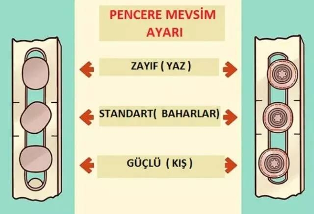 Önemli: Cıvatayı tamamen çevirmeyin! Tam olarak 90 derece dönmelidir. Her şeyi doğru yaptıysanız, pencere daha sıkı kapanacaktır. Aksi halde hata yapmışsınızdır. Tüm cıvataları tekrar kontrol edin – sağ tarafa döndüklerinden emin olun.