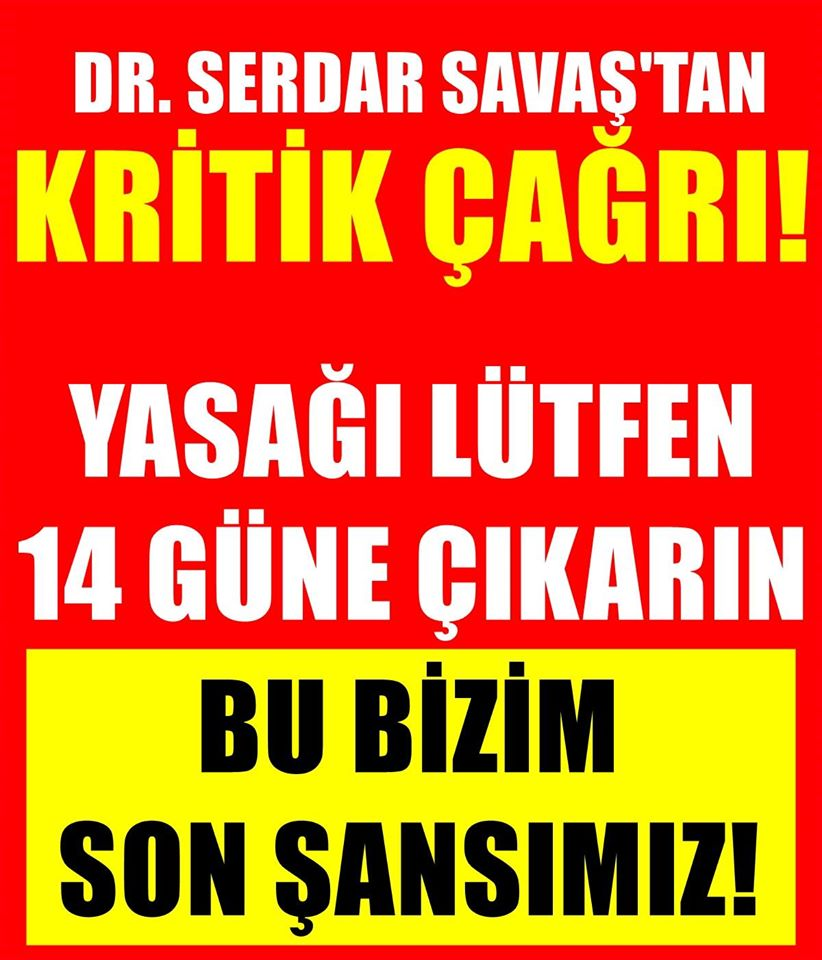 Dr. Savaş'tan kritik çağrı: 'Yasağı lütfen 14 güne çıkarın, bu bizim son