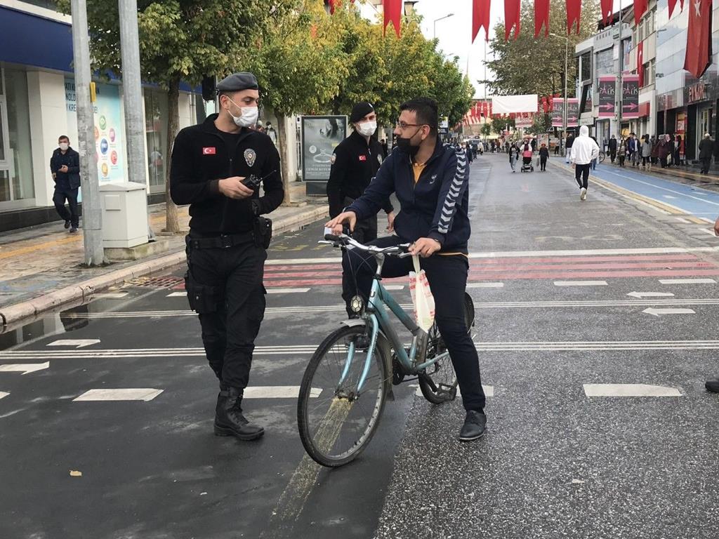 Bu kapsamda denetimlere hız kesmeden devam eden Düzce İl Emniyet Müdürlüğüne bağlı ekipler, İstanbul Caddesi başta olmak üzere kent merkezinde uygulama yaptı. Düzce İl Emniyet Müdürlüğü İnsansız Hava Araçları Şube Müdürlüğü ekipleri de drone ile havadan destek verdiği denetimlerde, maskesini indiren veya takmayan vatandaşlar uyarıldı.