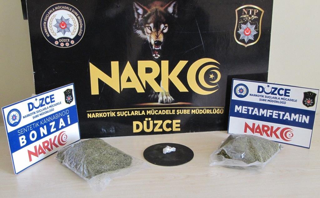 Düzce İl Emniyet Müdürlüğü Narkotik Suçlarla Mücadele Şube Müdürlüğü polisleri tarafından yapılan operasyonda 968 gram Sentetik Kannobinoid Maddesi ve 4 gram Metamfetamin maddesi ele geçirilmiştir. Olayla 1 kişi tutuklandı.